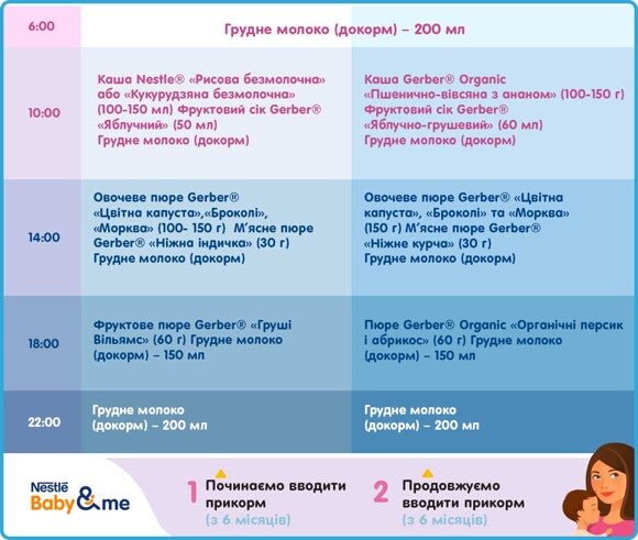 | Прикорм | за потреби | невеликі порції |