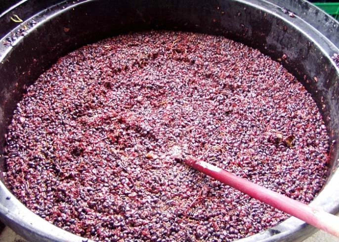 Спочатку слід підготувати виноград. Ретельно промийте його, відокремте від гілочок та помістіть у великий ферментаційний бак.