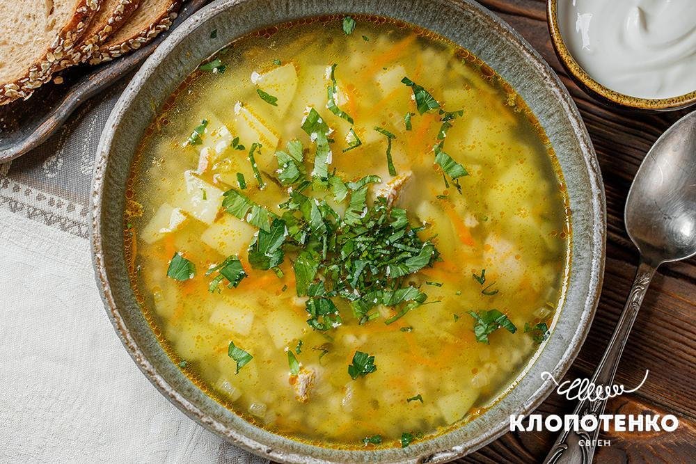 - В киплячий бульйон додайте перловку й варіть її близько 20 хвилин.